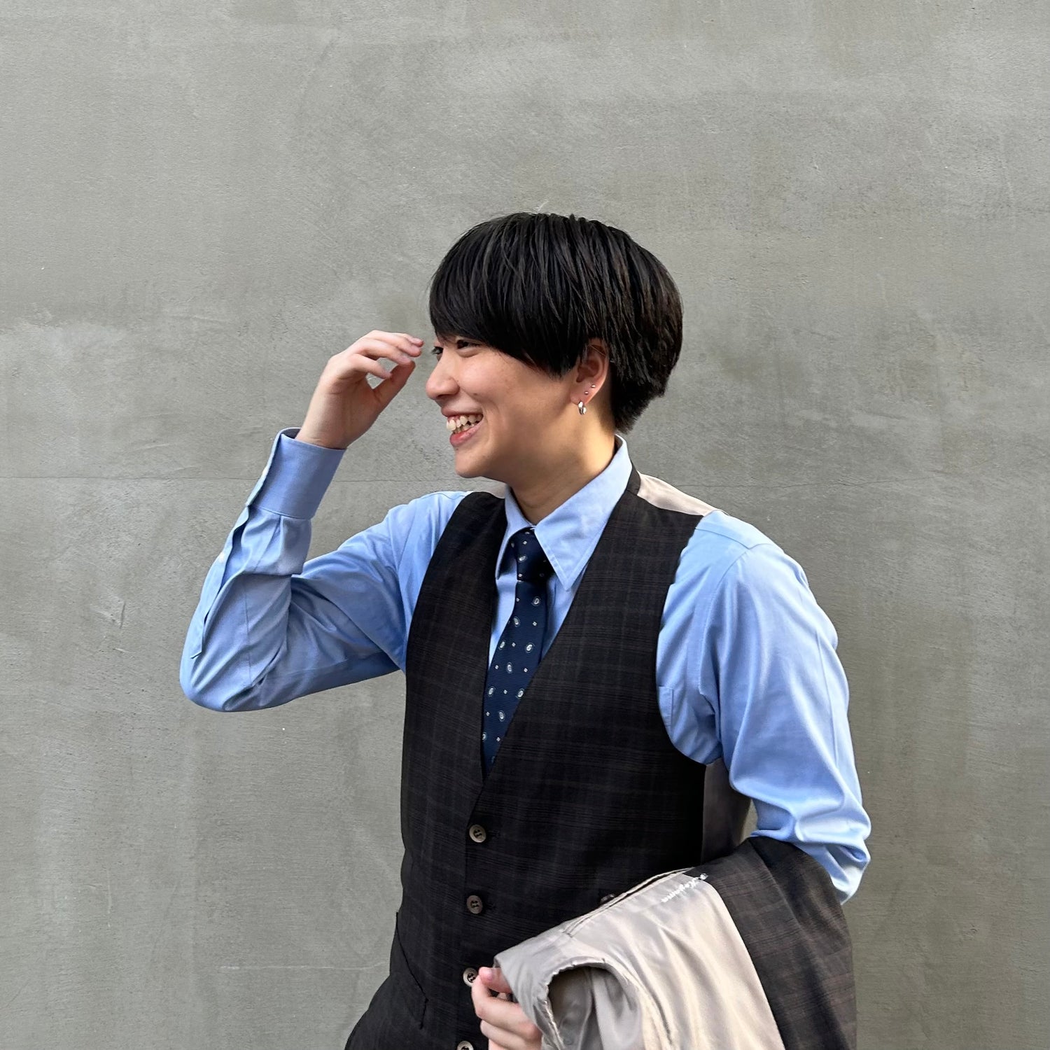 僕は、いわゆる一般的なオーダーメイドスーツ店とLGBTQ+専門のオーダーメイドスーツ店の2店舗で働いていた経験と、当事者ならではの視点から、お客様の性自認や性表現に合ったスーツのご提案が可能です。